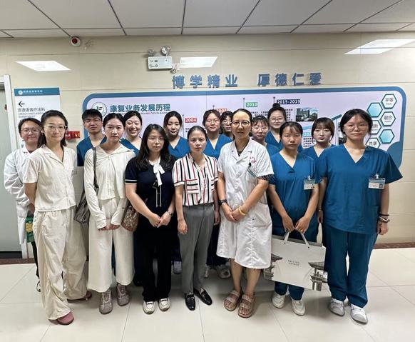 上午8:30,检查团首先抵达陕西省康复医院。脑调控主任郝静、神经康复六科主任刘江净热情接待了学院一行。双方在科室展开了深入交流与慰问活动。实习学生们积极分享自己在省康复医院的实习经历,从初入医院时对各类康复设备的陌生,到如今能够熟练协助带教老师为患者制定康复计划并实施部分康复训练,每一步成长都凝聚着学生们的努力与医院带教老师的悉心指导。郝静主任与刘江净主任对实习学生们的表现给予了高度评价,称赞他们专业基础扎实,学习态度积极,能够迅速融入医院的工作节奏,为科室注入了新鲜活力,同时也肯定了学院在人才培养方面的成效。