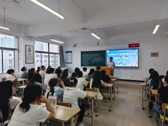 为进一步做好大三学生的就业前置工作,5月11日辅导员任萌老师在2J503、504对2024级护理学专升本学生召开“正确认识与规范填写就业协议”就业指导主题班会。
